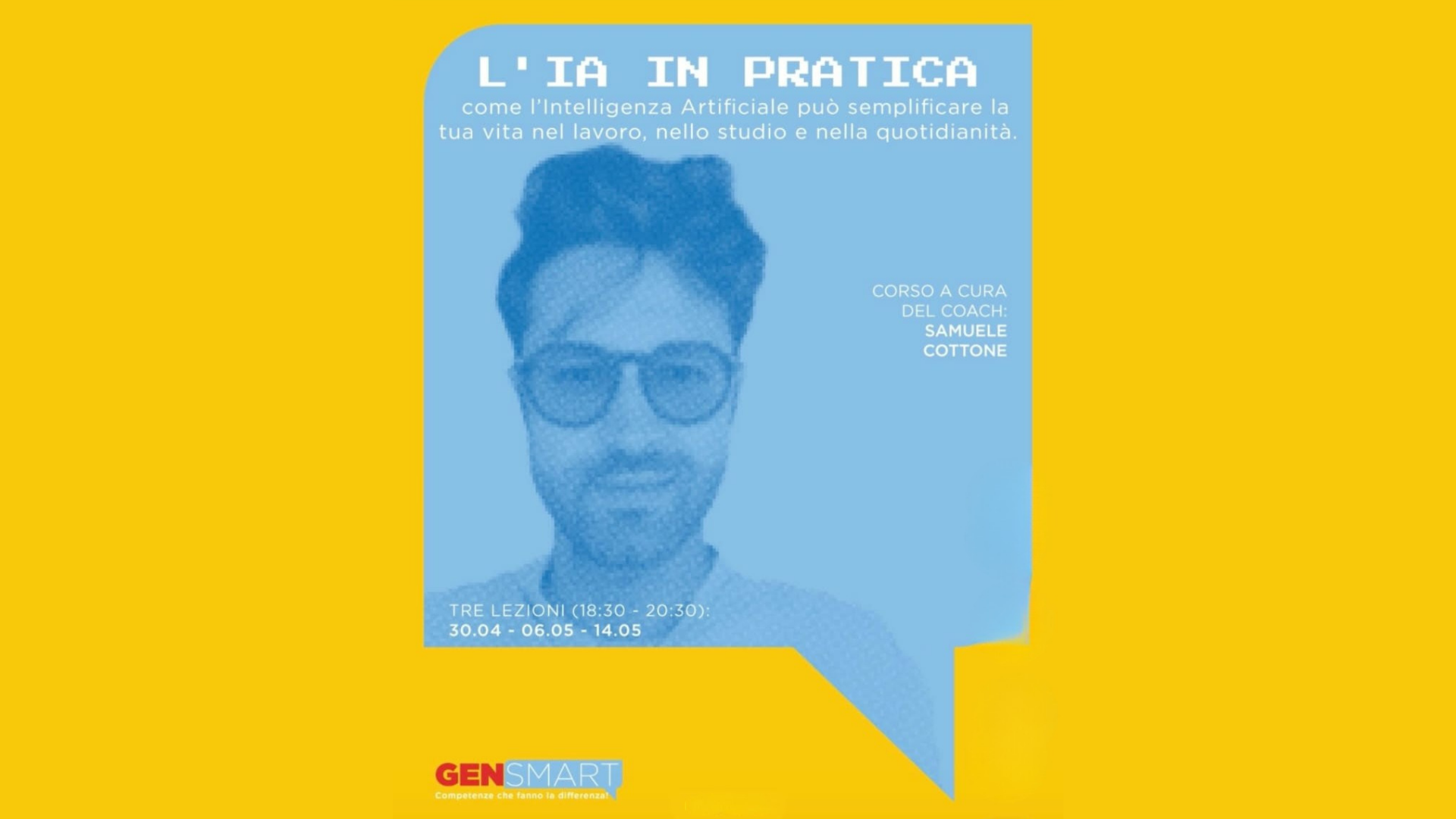 L’intelligenza artificiale non è più una prospettiva futura, ma uno strumento già presente nella quotidianità di lavoro e studio. Con questo obiettivo nasce “L’IA in pratica”, il corso promosso da Gen Smart e curato dal coach Samuele Cottone, in programma tra fine aprile e metà maggio.