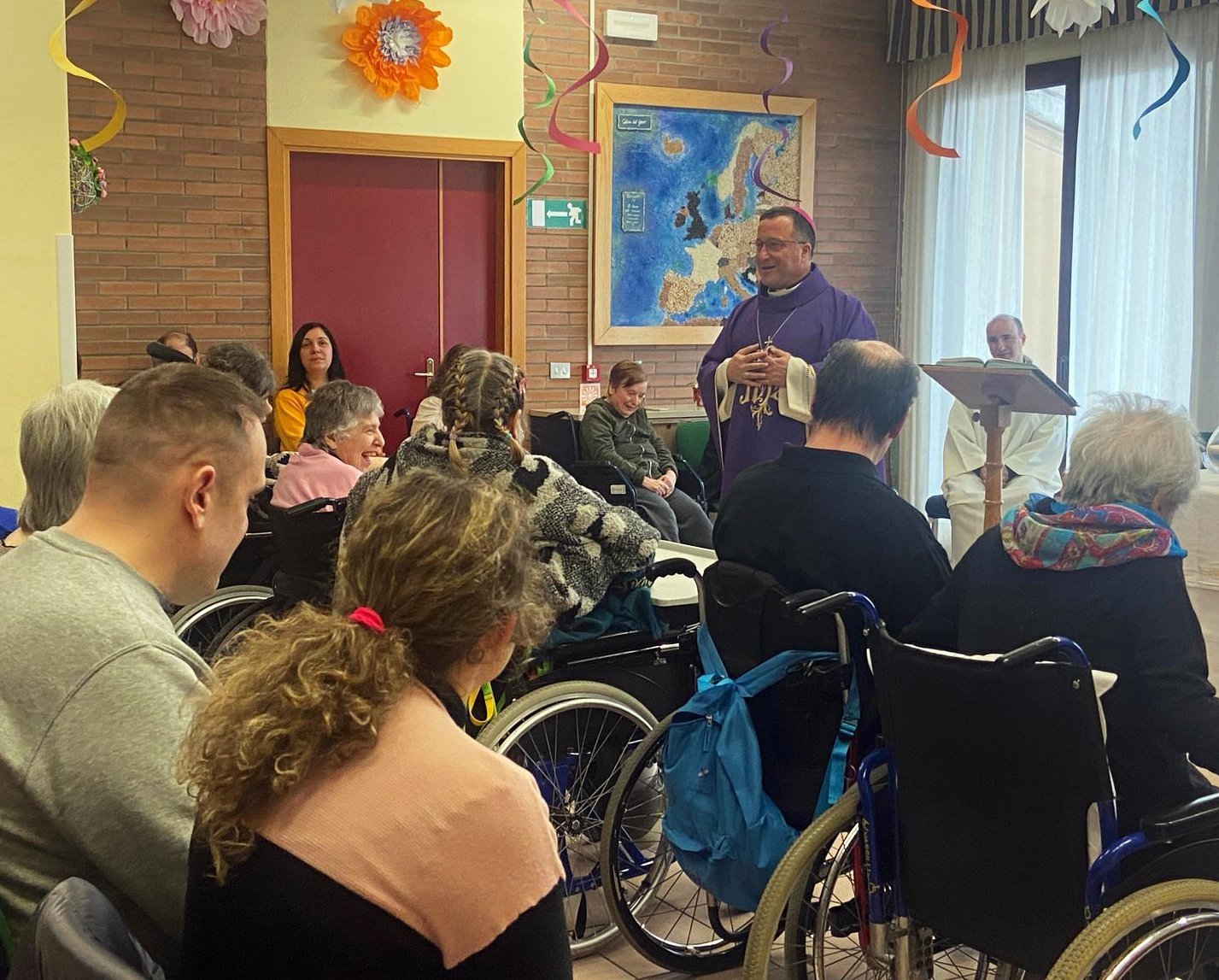 Gli Ecc.mi Capitani Reggenti Francesca Civerchia e Dalibor Riccardi hanno fatto visita questa mattina alla struttura del Colore del Grano, per prendere parte alla Santa Messa in vista della Pasqua con gli utenti della struttura e dell’Atelier.