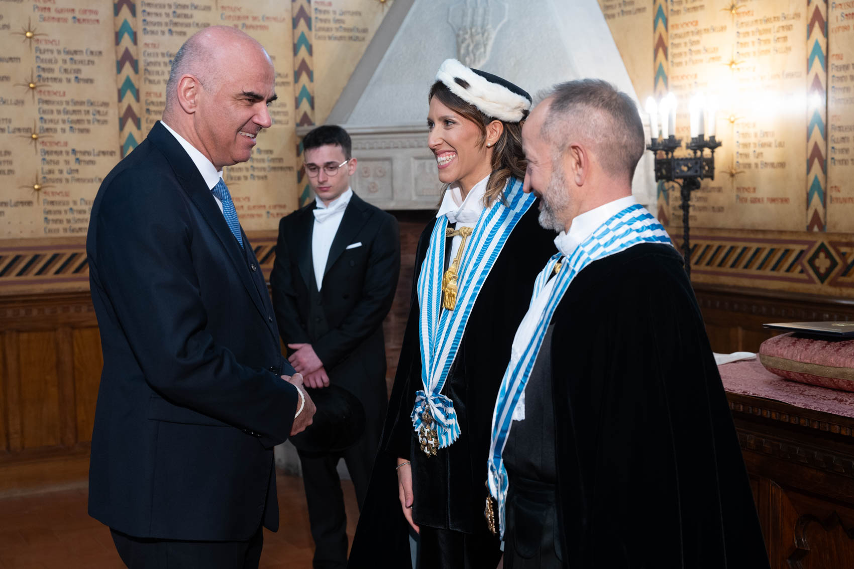 La giornata è proseguita con il corteo verso Palazzo Pubblico e il passaggio alla Basilica del Titano per la celebrazione religiosa, accompagnata dagli auguri del vescovo Domenico Beneventi. Tornati a Palazzo, spazio all’orazione ufficiale affidata a Alain Berset, che ha invitato a rimettere il diritto al centro della sicurezza europea, contrapponendolo alla logica della forza.